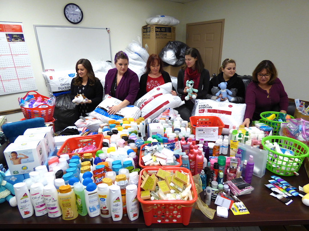 Mountains of pillows and a roomful of toiletries greeted Passage House Domestic Violence Services staff when they arrived at the City of Niagara Falls Department of Public Works on Monday afternoon. For the past six weeks, United Steelworkers Local No. 9434 and Women of Steel have collected shampoo, toothpaste, deodorant, body wash, combs, pillows and sheets for the Family & Children's Service of Niagara program. Most items were purchased and donated, while others were handmade and personally delivered.