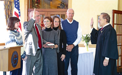 On a cold New Year's Day, four newly elected town officials, their families, friends and other interested Island residents were at the Buffalo Launch Club, waiting for the inauguration of four newly elected town officials to begin. Only one person was missing when the clock struck noon: New York State Supreme Court Justice Russell Buscaglia.