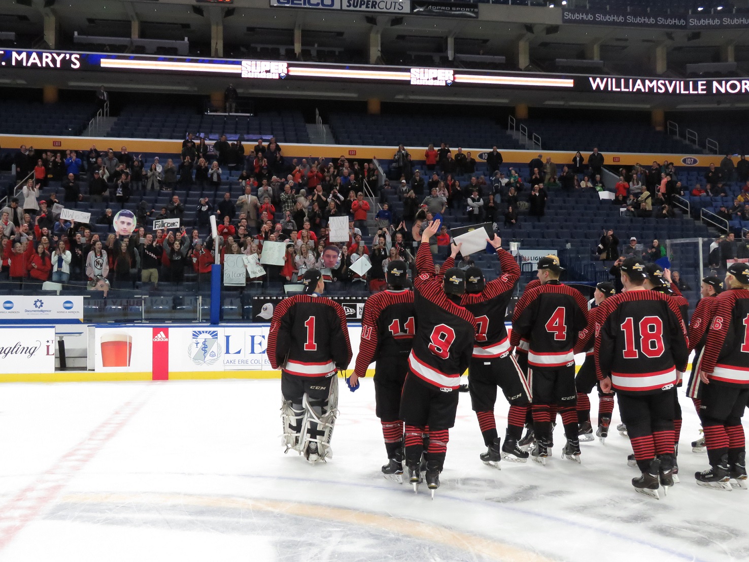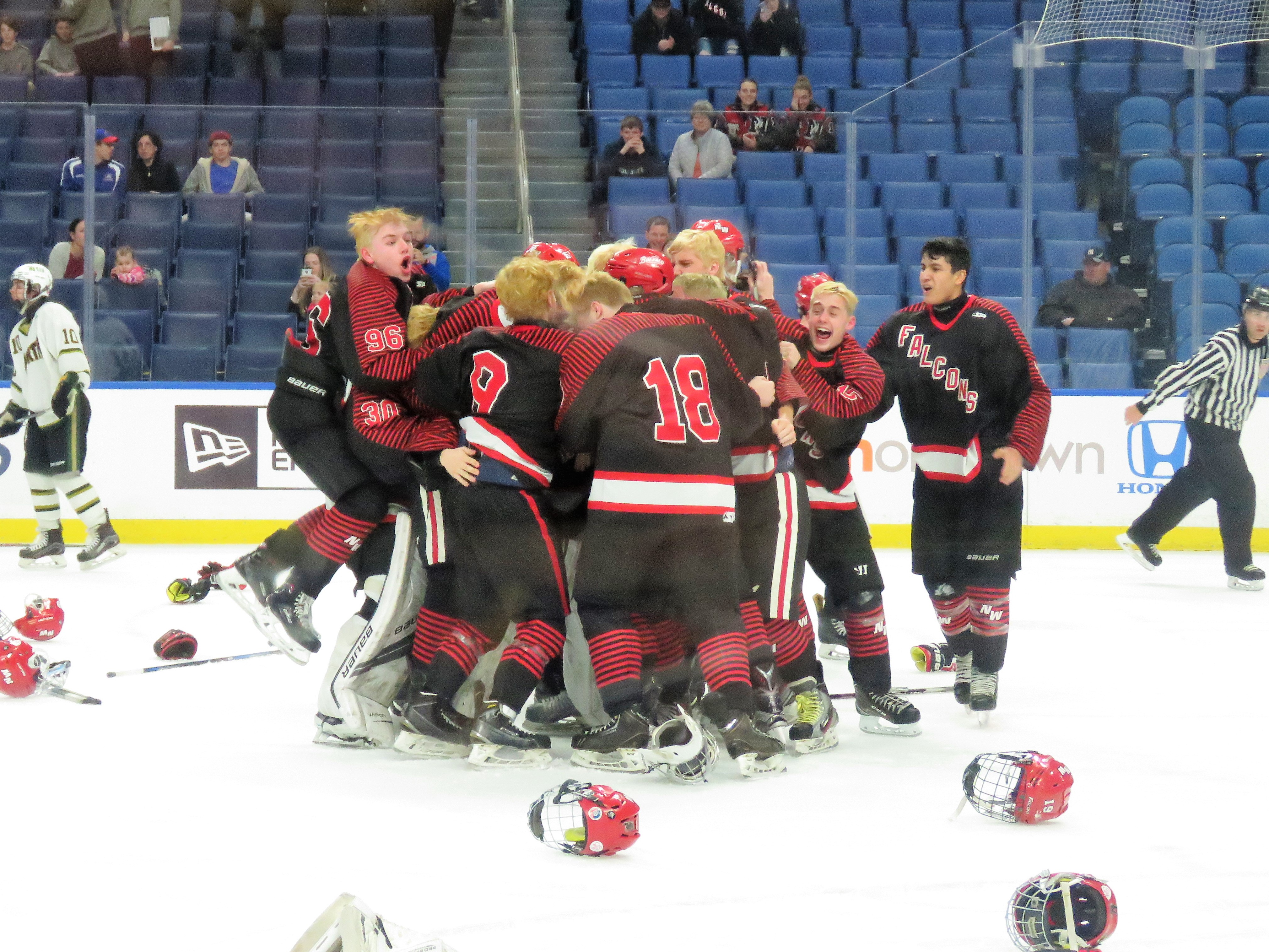 The Falcons storm the ice to celebrate after defeating Williamsville North. (Photos and videos by David Yarger)