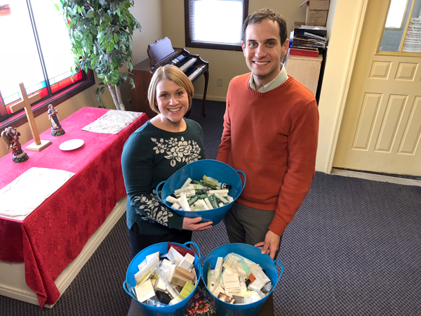 On Thursday, Destination Niagara USA Director of Communications Andrea Czopp brought Community Missions of the Niagara Frontier three containers filled with hotel-quality bath items. The toiletries, including soaps, body washes and lotions, shampoos and conditioners, were collected by the destination marketing organization's traveling staffers.