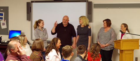 Don Papaj speaks at Monday's Grand Island Board of Education meeting thanking the school district and community for their support of his wife as she recovers from a hit-and-run accident. (Photo by Larry Austin)