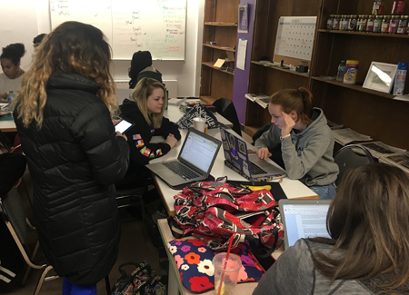 Students enrolled in Niagara University's Niagara Wire newspaper course are shown at work in their newsroom.