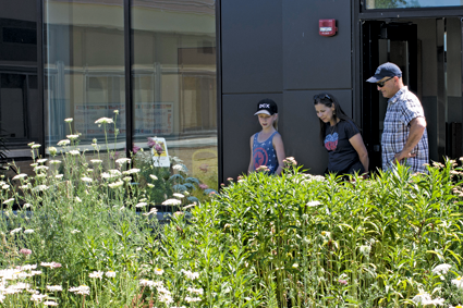 A repeat stop on the tour this year was the Kaegebein courtyard, created by students, teachers, and staff with the help of the U.S. Fish and Wildlife Service and volunteers such as employees at Thermo Fisher Scientific. Kaegebein's courtyard included a pollinator garden and garden beds of vegetables.