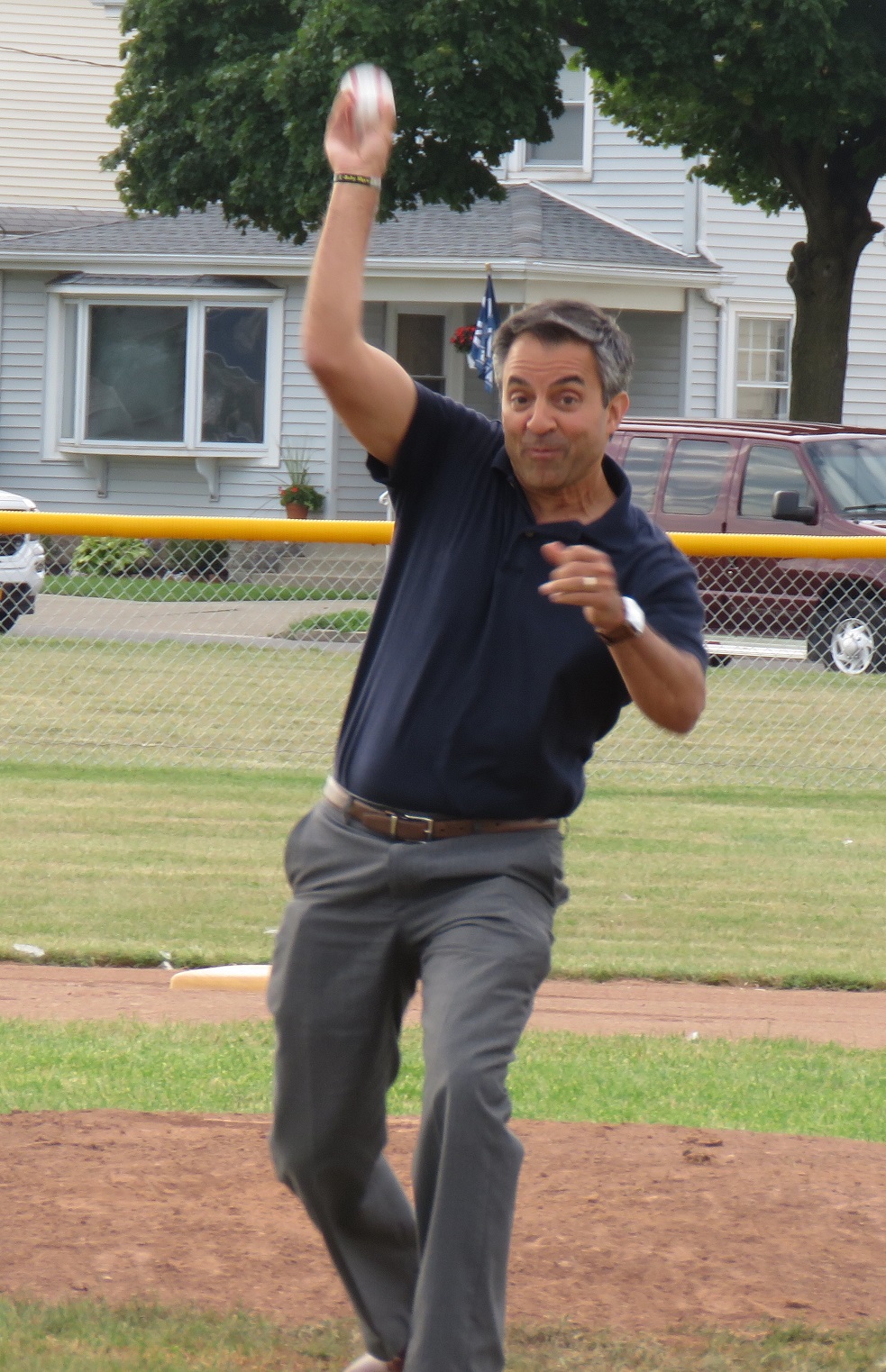 Niagara Falls Councilman Andy Touma throws out the ceremonial first pitch.