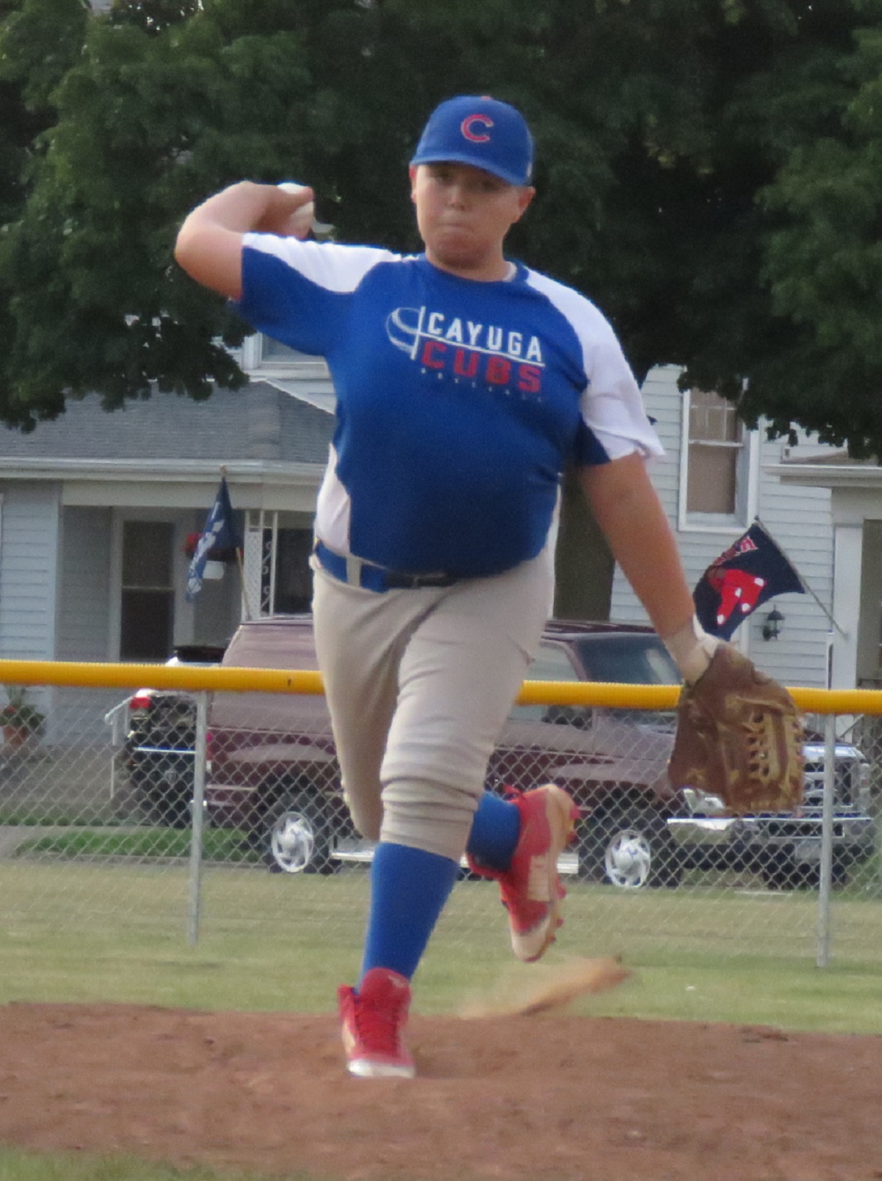 Connor Morris toes the rubber for the Cayuga Cubs.