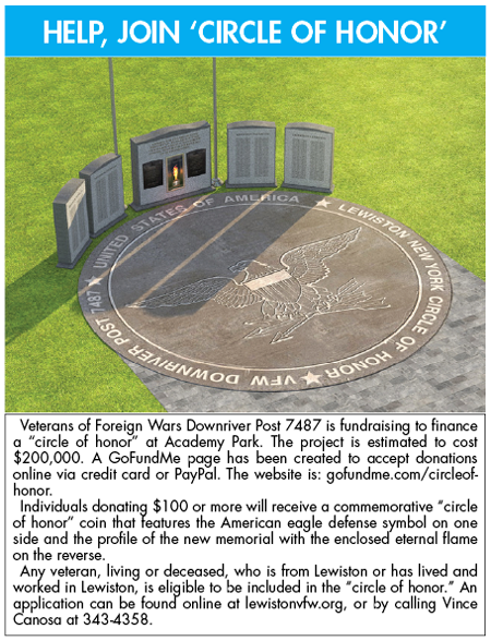 The Village of Lewiston Board of Trustees endorsed a plan to build a “circle of honor” in Academy Park. Veterans of Foreign Wars Downriver Post 7487 is raising funds to redo the monument area.