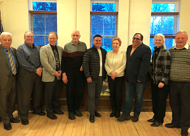 From left, Village of Lewiston counsel Joseph Leone; trustees Dan Gibson and Nick Conde; Game; Paladino; Welch; Williams; and trustees Marasco and Vic Eydt.