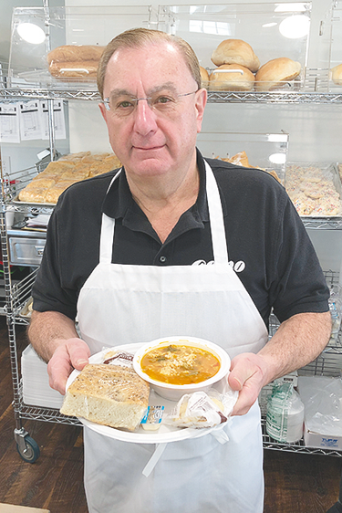 Louie Antonacci prepares a bowl of homemade soup.