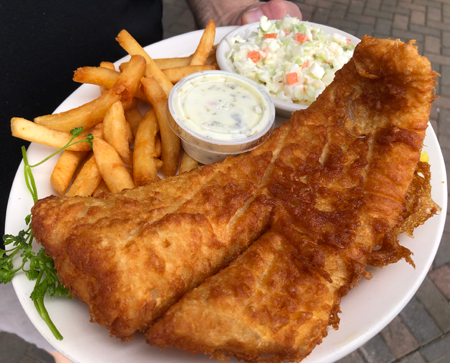 •Mary Ann proclaimed, “It is a huge portion of thick, fresh white fish with a delicate, delicious golden outer layer. Perfection.”