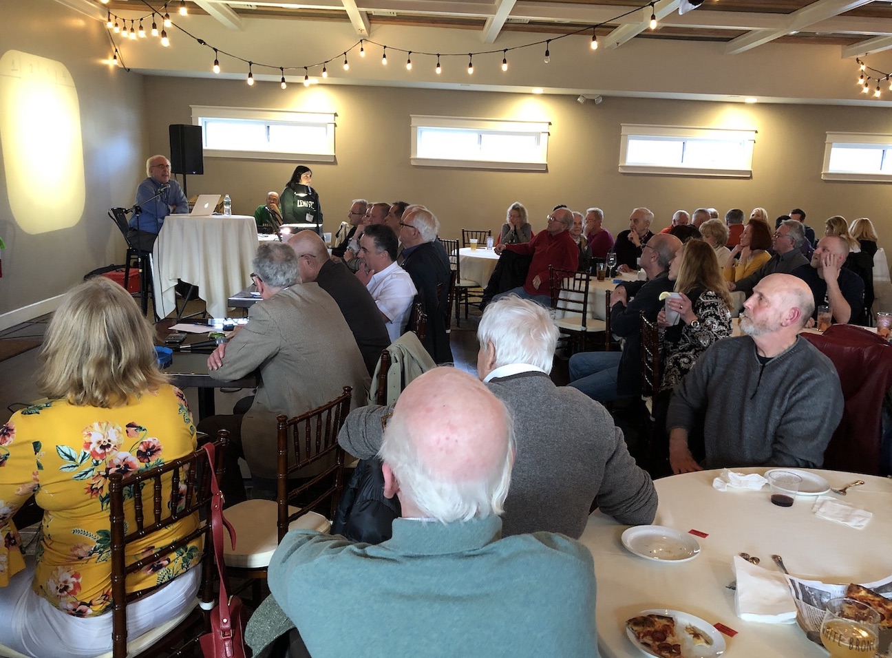 In between rounds, the audience was invited to participate. Those who answered a question correctly earned a 50/50 split ticket, while those who guessed wrong – or didn’t answer in the form of a question – had to pay a $5 “fine.” All funds, including the admission cost, will benefit the Historical Association of Lewiston.