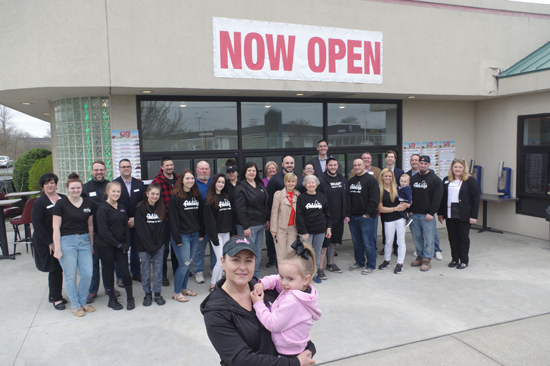 Joined by friends, family, employees and members of the Grand Island Chamber of Commerce, Toni Amantia cut a ceremonial ribbon to open the new location of Adrian’s Custard & Beef. (Photo by Larry Austin)