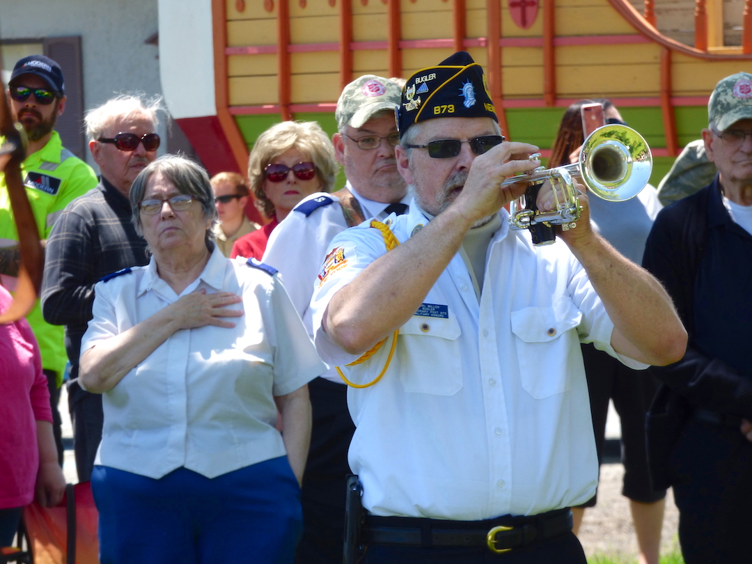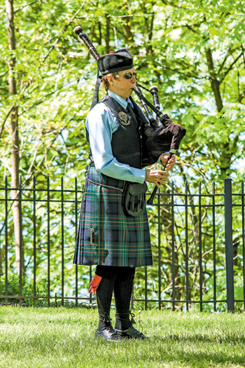 The service featured a reading of the Gettysburg Address by the Post Judge Advocate Kurt Mieth, the playing of “Amazing Grace” on the bagpipes by Kate Myers, plus the U.S. and Canadian national anthems by Lew Custode and patriotic songs by Bill Siddall. (Photos by Wayne Peters)