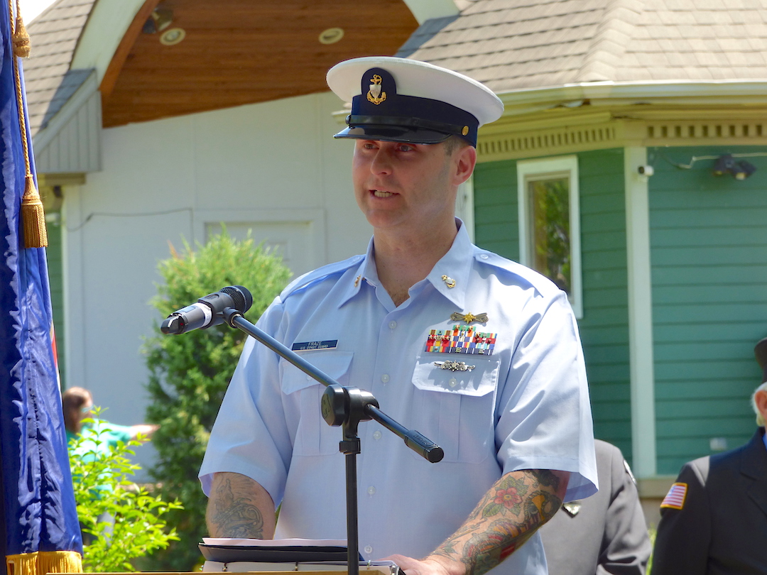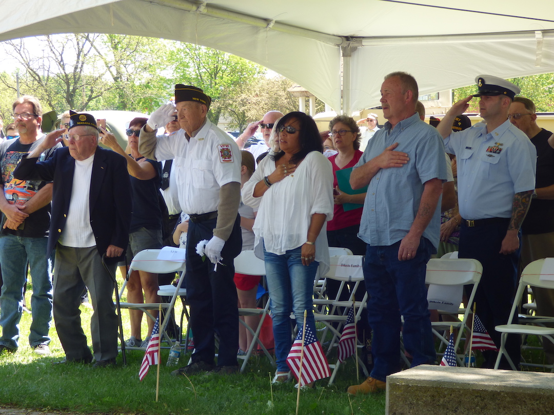 Emcee Norm Machelor, chairman of the event committee, welcomed the crowd of more than 400. He introduced the Lewiston Choraleers; keynote speaker CPO Nathaniel Fraze, commander of Coast Guard Station Niagara; special guest Simon Zawistowski, a Boy Scout with Troop 824; and Michael Roemer, who presided over the laying of a remembrance wreath by VFW Post 7487. Post Cmdr. Bill Justyk and the parents of late U.S. Army Spc. Alan Dikcis assisted with this portion of the program.