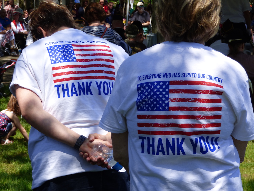 Marchers, units, elected leaders, dancers, musicians and military members proceeded down Center Street as crowds watched, waved and saluted from the sidewalks. Once everyone entered Academy Park, a memorial service began in front of the veterans monuments.