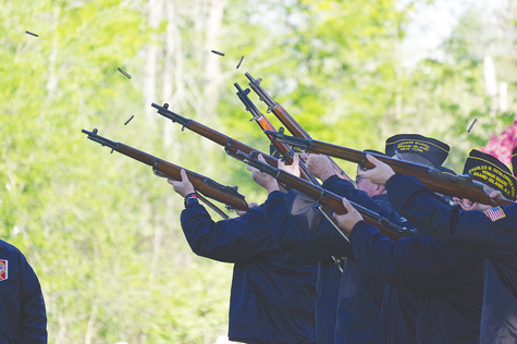 The honor guard of the Veterans of Foreign Wars Post No. 9249 performs a rifle salute during gravesite services on Memorial Day. The honor guard made stops at six Island cemeteries that morning: Whitehaven Cemetery on East River Road, Maple Grove Cemetery on Stony Point Road, Staley Cemetery on West River Road, Assumption Cemetery on Whitehaven Road, Trinity Cemetery on at Historic Trinity Church on Whitehaven Road, and St. Stephen Cemetery next to Old St. Stephen Church on Baseline Road.
