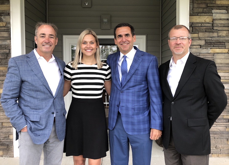 Pictured, from left, developer James Jerge with McGuire Development Co. Vice President of Marketing Megan Tafelski, President James Dentinger and Chief Operating Officer David Von Derau Jr.