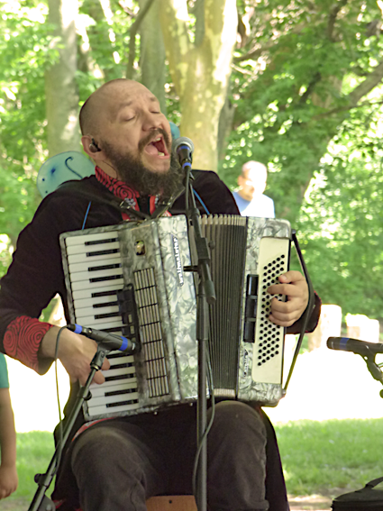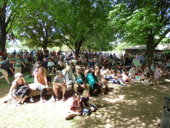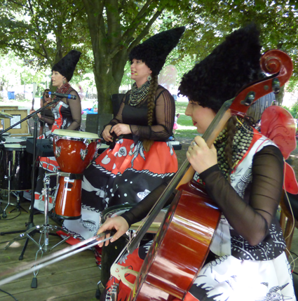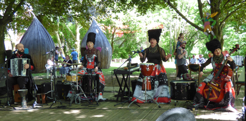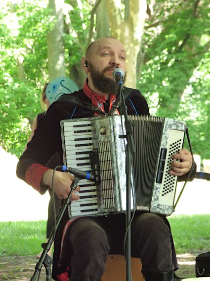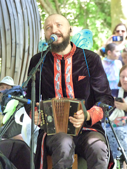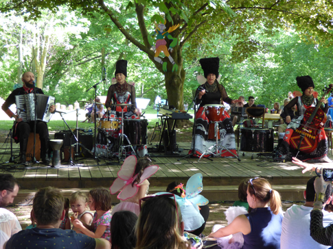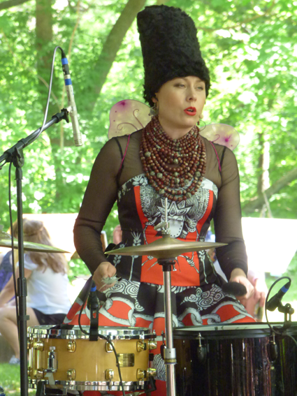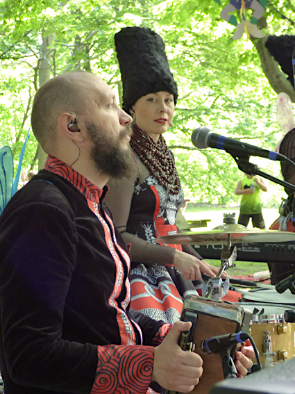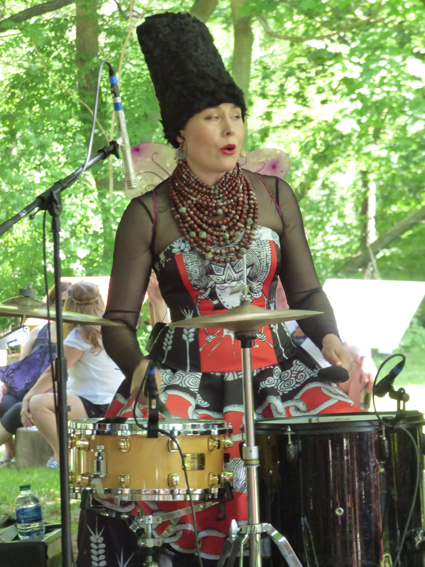 Then, at 4 p.m., Ukrainian “ethno-chaos band" DakhaBrakha put on a show for the adults seated around the Emerald Grove Stage. The foursome drummed, sang, made unexpected musical noises and spurred the large crowd to dance.