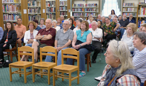 Frontier House co-owner Jeff Williams speaks with library audience members.