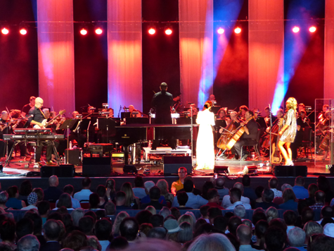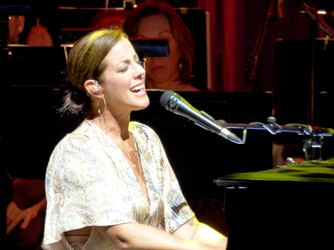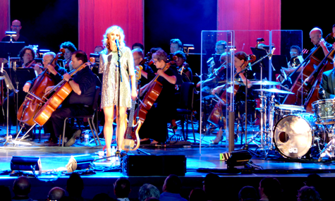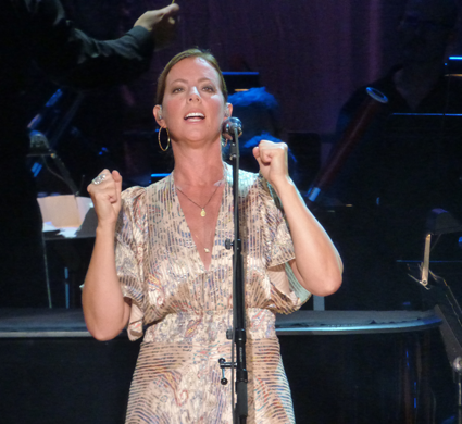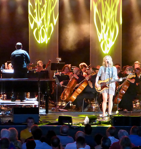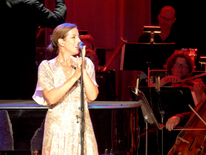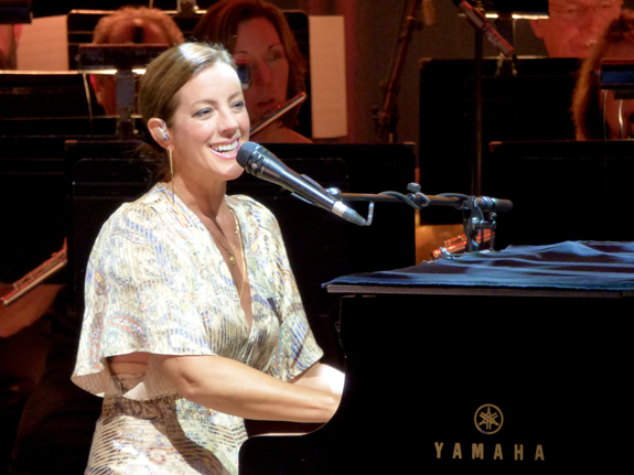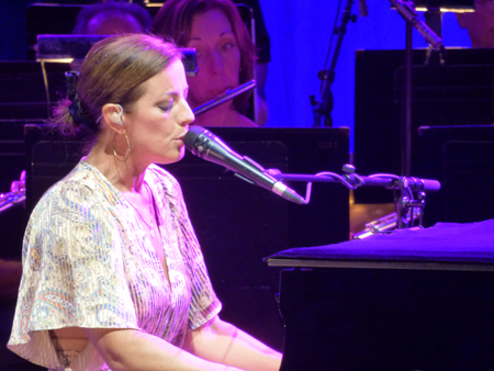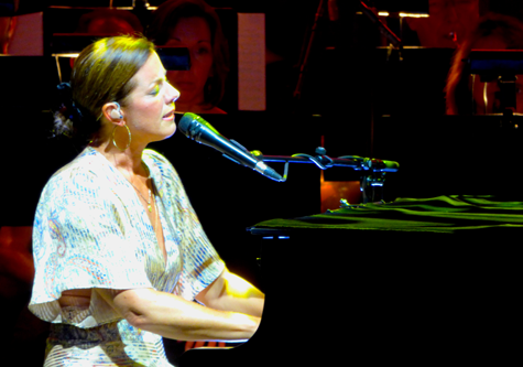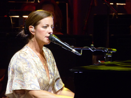 Throughout the first set, McLachlan performed in front of a mic, sometimes with a guitar, and other times at the piano. The BPO accompanied her backing band and gave extra substance to songs. McLachlan called the orchestra magical.