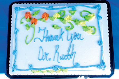 “The 49 years that I’ve been here have gone by in a flash,” Ruth told the party, where one patient after another stopped to talk to him. Ruth described the people on the Island that he has treated as “loyal.”