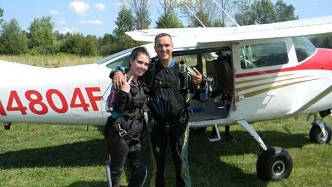Out by the lake in the Town of Porter there’s new and unique offering for those of the daring persuasion to jump into. Known as Skydive the Falls, this new operation is under the direction of veteran tandem instructors Jason Berger and Tom Neilson along with pilot Kyle Wolinski, who mans the Cessna 206 triple prop. They team, including videographer Troy Fallon in the air and Jill Berger on ground, offer visitors the thrills of a one-of-a-kind open-door plane ride over Niagara Falls – followed by a skydive high up from the upper heavens.
