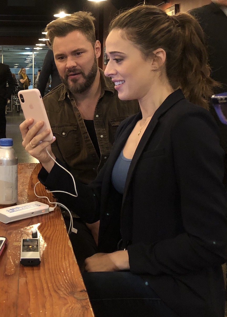 Patrick John Flueger (Det. Adam Ruzek) and Squerciati watch the crossover trailer for the first time.
