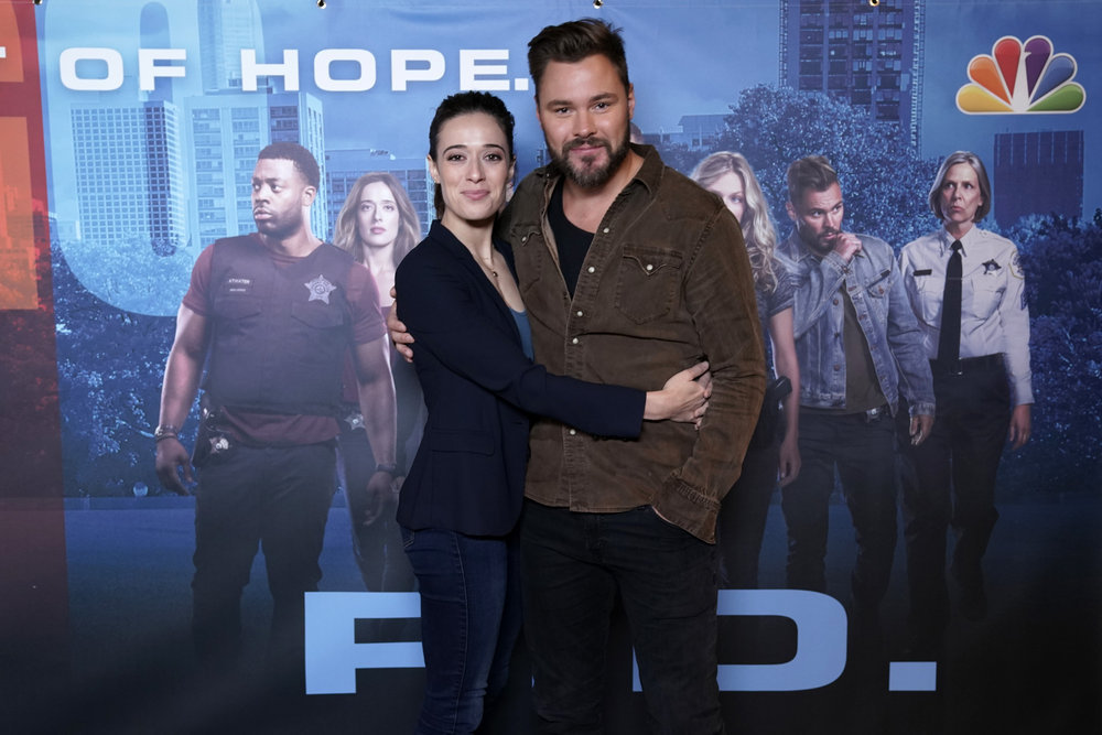 Marina Squerciati and Patrick John Flueger at "One Chicago Day" at Lagunitas Brewing Company in Chicago. (NBC photo by Elizabeth Morris)