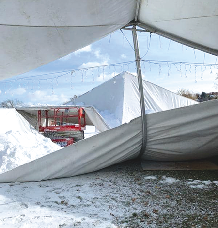 It did a number on the warming tent complex that’s an integral part of the ice rink.