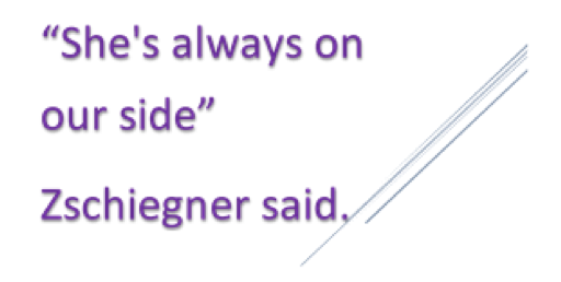 “She's always on our side,” Zschiegner said. “Role-modeling dedication and love of people, but particularly for students of theater.”