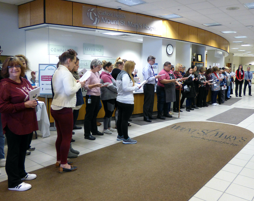 On Monday morning, Mount St. Mary’s Hospital welcomed – for the first time – the Sacred Heart Villa School Children’s Choir to perform as part of the hospital’s annual advent service. Students sang and danced as they cheerfully performed about a half-dozen holiday songs.