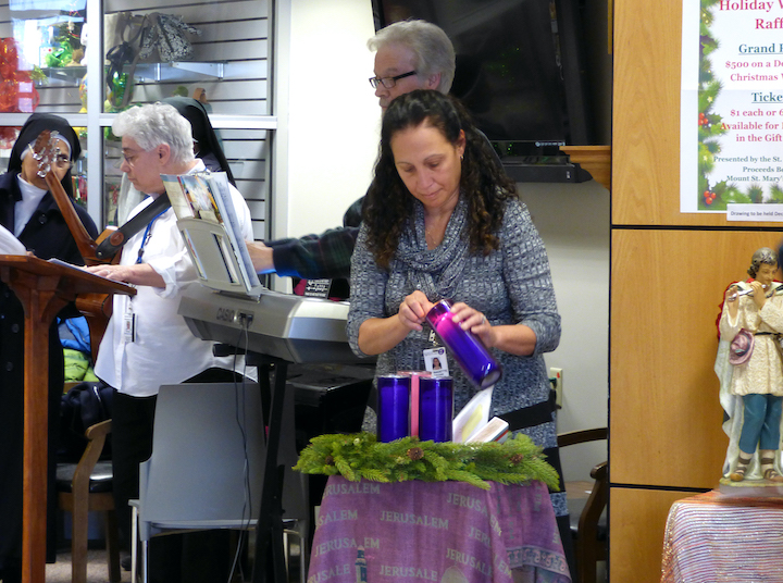 Mount St. Mary’s associates and volunteers gathered in the main lobby to watch. They welcomed the advent season through this special holiday tradition. Staffers also participated in a service titled, “Hope in the Return of Christ.”