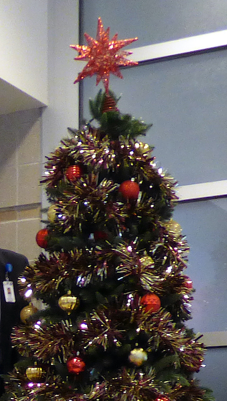 Following prayers and the lighting of an advent candle, the large Mount St. Mary’s Christmas tree was crowned with a red ornament.
