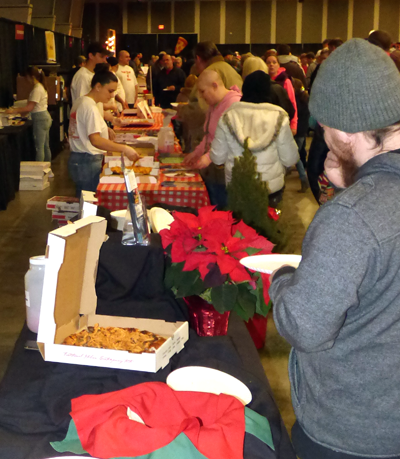“Festival of Slice” was held at The Conference & Event Center Niagara Falls on Old Falls Street as part of “Jingle Falls USA.” Event organizers said they were pleased – and surprised – at the turnout. More than a few thousand people lined the venue – and stood in lines, as they waited for samples of Niagara County’s prize pizza pies.