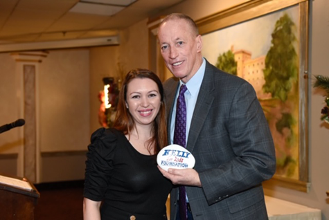 Kimberly LaRussa with Bills legend QB, Jim Kelly. The Kelley for Kids Foundation awarded LaRussa’s Sweet Buffalo Rocks with a grant.