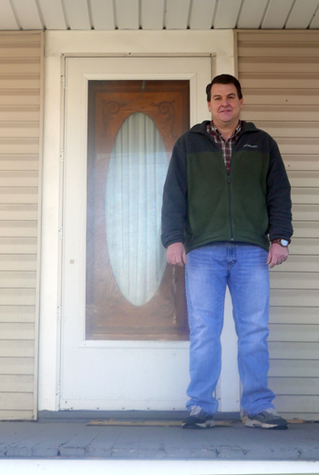 Kevin Slough, pastor of Trinity United Methodist Church, stands on the porch of the parsonage that has been donated to the Family Justice Center.