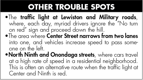 “I think if we have a police presence, that’s running radar – and in different spots; not always sitting in the same spot every morning – I think up near Tops doesn’t solve the problem. Because they’re coming to an intersection, to a light. But if you’re down in the middle of the street, between Sixth Street and Portage Road, there’s no street lights there. There’s no signals. So, they can get a good run going up that hill. They’re passing people in the middle of the road, turning up North Fourth here.