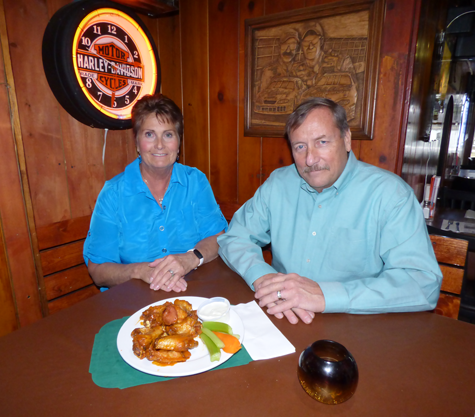 The Isle View Bar & Grill owners Max Nizialek and John Drennan are shown with their award-winning chicken wings.