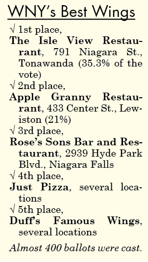 “I think we have the best wings,” Nizialek said. “But we’re not really known; we’re small,” compared to other vote-getters such as Duff’s, Just Pizza and Apple Granny Restaurant.