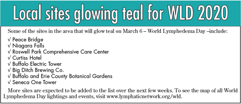 For the past three years, I've organized the “Light it up for Lymphedema” campaign for the New York State Chapter of the Lymphatic Education & Research Network (LE&RN). The campaign encourages sites around the state and Canada to glow in teal each March 6, World Lymphedema Day, to raise awareness of lymphedema (LE) and lymphatic diseases (LD), chronic swelling conditions that have no cures. If left untreated, LE and LD can lead to deformities, infections and death.