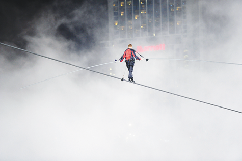 In June 2013, he crossed over the Grand Canyon in a Discovery Channel special. About 17 months later, he again teamed with Discovery, this time walking high above “The Windy City” of Chicago.