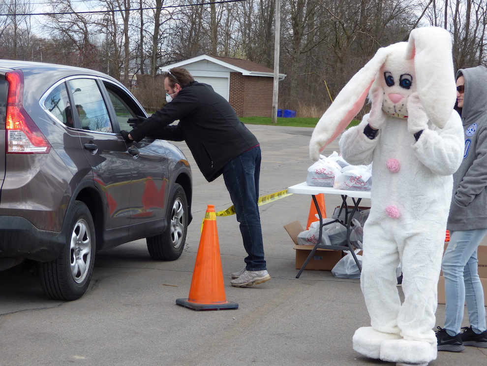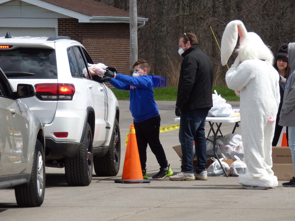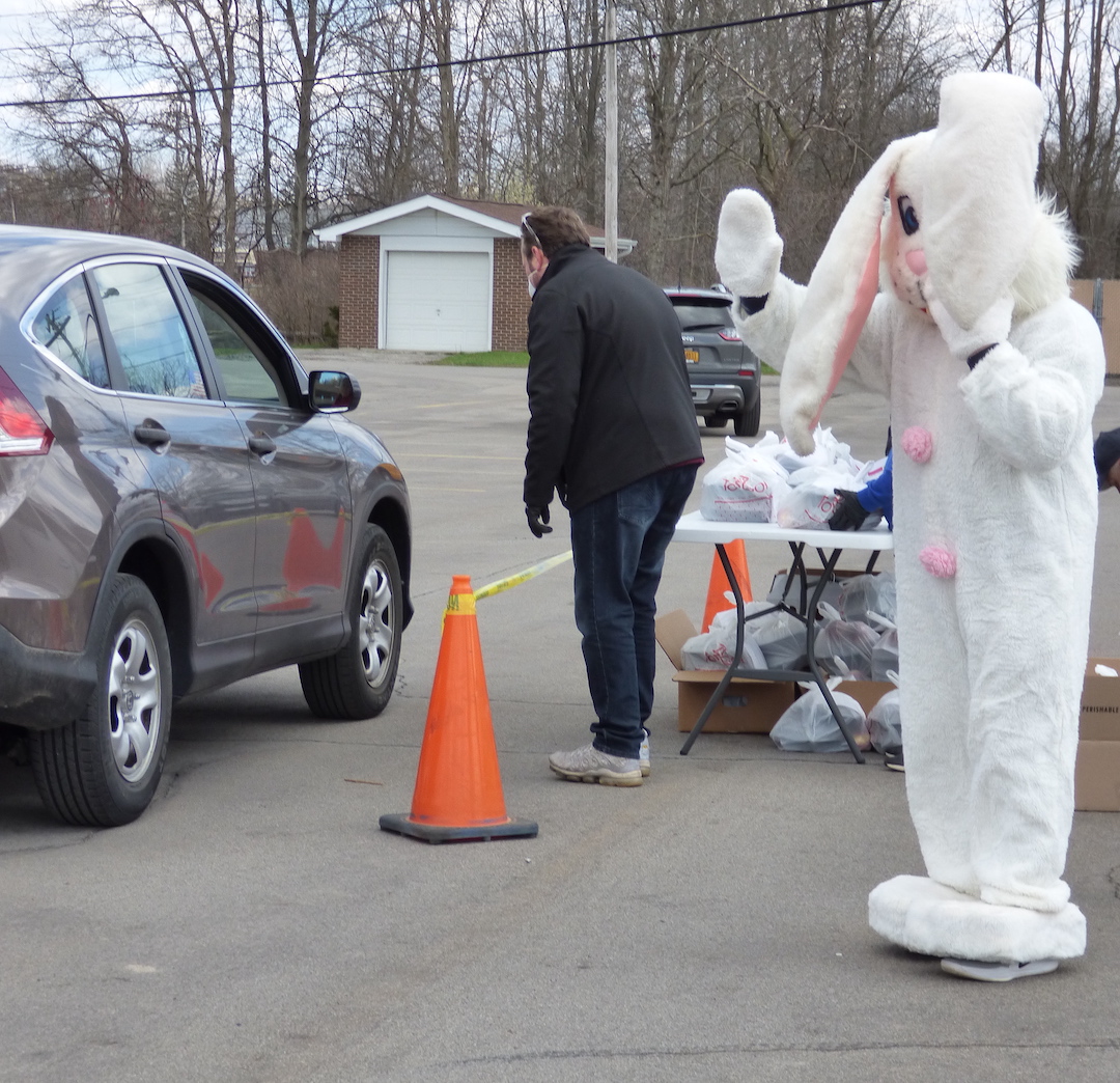 In Wheatfield, Niagara County Legislator Jesse Gooch gave out 100 free hams for seniors in need. He setup a drive-thru in the Town Hall parking lot, thus keeping everyone safe and physically separated.