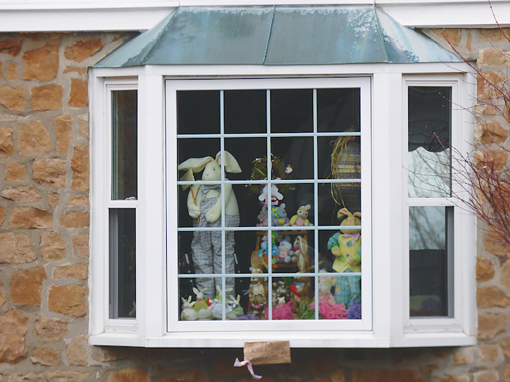 Readers pointed out the Edwards residence, off Callan Road, which has a colorful collection of bunnies in the front windows.