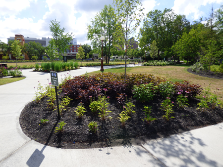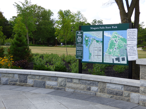 Located in front of the Orin Lehman Visitor Center in Prospect Park, this project is the final piece of a nearly $70 million revitalization of the landscape. Launched in 2011, the Niagara Falls State Park renovation plan was a multiyear commitment to renew the area in a manner that better reflects noted park designer Frederick Law Olmsted's vision for the green spaces. The plan renovated the park's major viewing areas, including Luna Island, Prospect Point, Lower Grove, Three Sisters Islands, North Shoreline Trail, Luna Bridge and Terrapin Point with new pedestrian walkways, enhanced landscaping, new benches, light posts and railings.