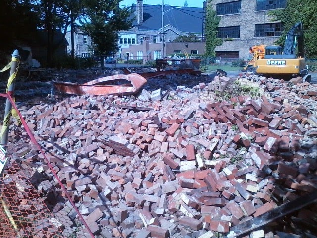 On July 8, 2014, the historic WEBR building, at 23 North St., was demolished by the City of Buffalo after the building was struck by lightning. (Photo courtesy Budd Bailey)