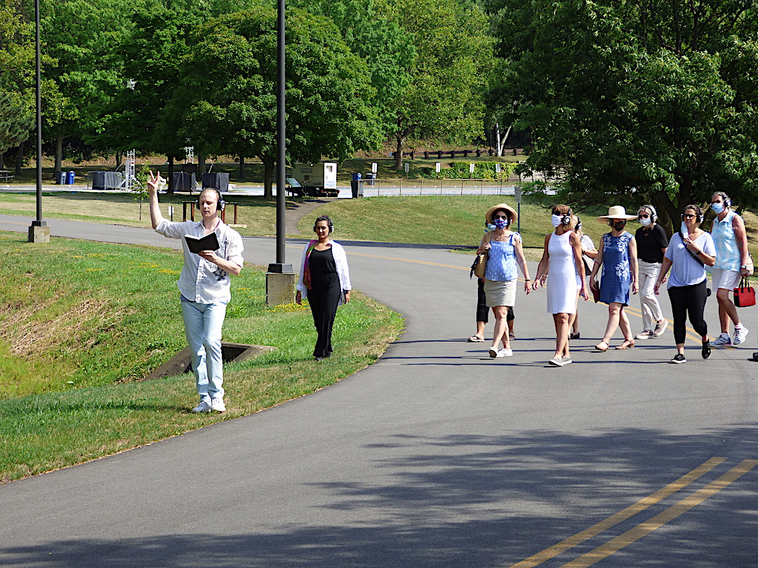 “The Art of Walking” is a major initiative for Artpark’s summer season that was created through an international collaboration between NYC artist Carin Jean White and Itsaso Iribarren and German de la Riva of Spain. It traces and celebrates Artpark’s history, unique landscape and ecology and art, as participants connect with Niagara’s ancient past, engage with the present and imagine the future. The meditation combined walking, stillness, listening, theater and dance, as patrons explore the nature, poetry and story of Artpark.