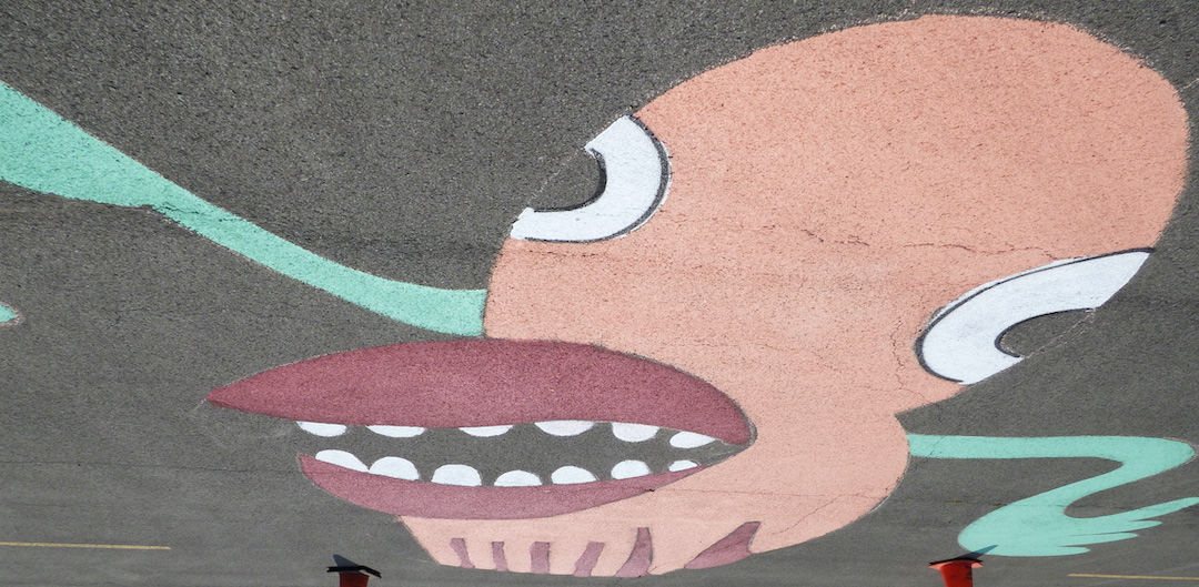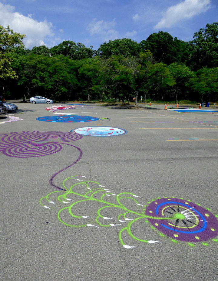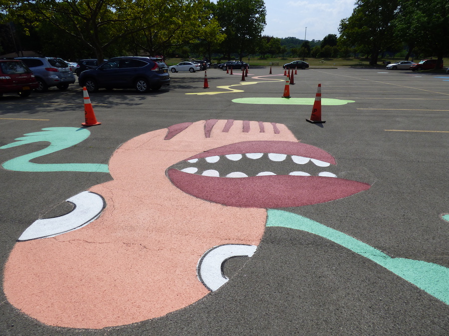 Motorists also noticed work taking place in the main parking lot on South Fourth Street. Rob Lynch and Matt Sagurney (aka The Solo Roths) have teamed with Cynthia Pegado and the “Artpark Bridges” community outreach program to transform the pavement into “a large canvas of color that gives voice to the underserved members of our community and expresses shared humanity.”