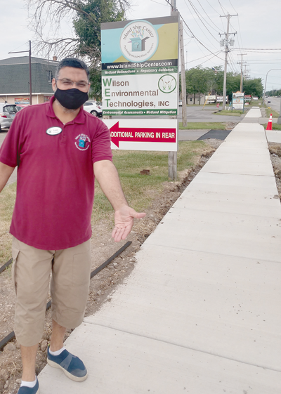 “We have a refrigerator filled with the coldest water on the Island that we use for every delivery driver who comes to the Island Ship Center. When we saw these sidewalks and the driveway pad becoming a reality, we made sure all the workers were properly hydrated, compliments of us,” Mojawalla said while inspecting the new sidewalks. “We are so excited about this project, because our town is now resembling the main streets in Williamsville and Clarence. This sidewalk project now allows residents to walk along Grand Island Boulevard rather than have to navigate traffic by being in the road. This is a great project for Grand Island.”