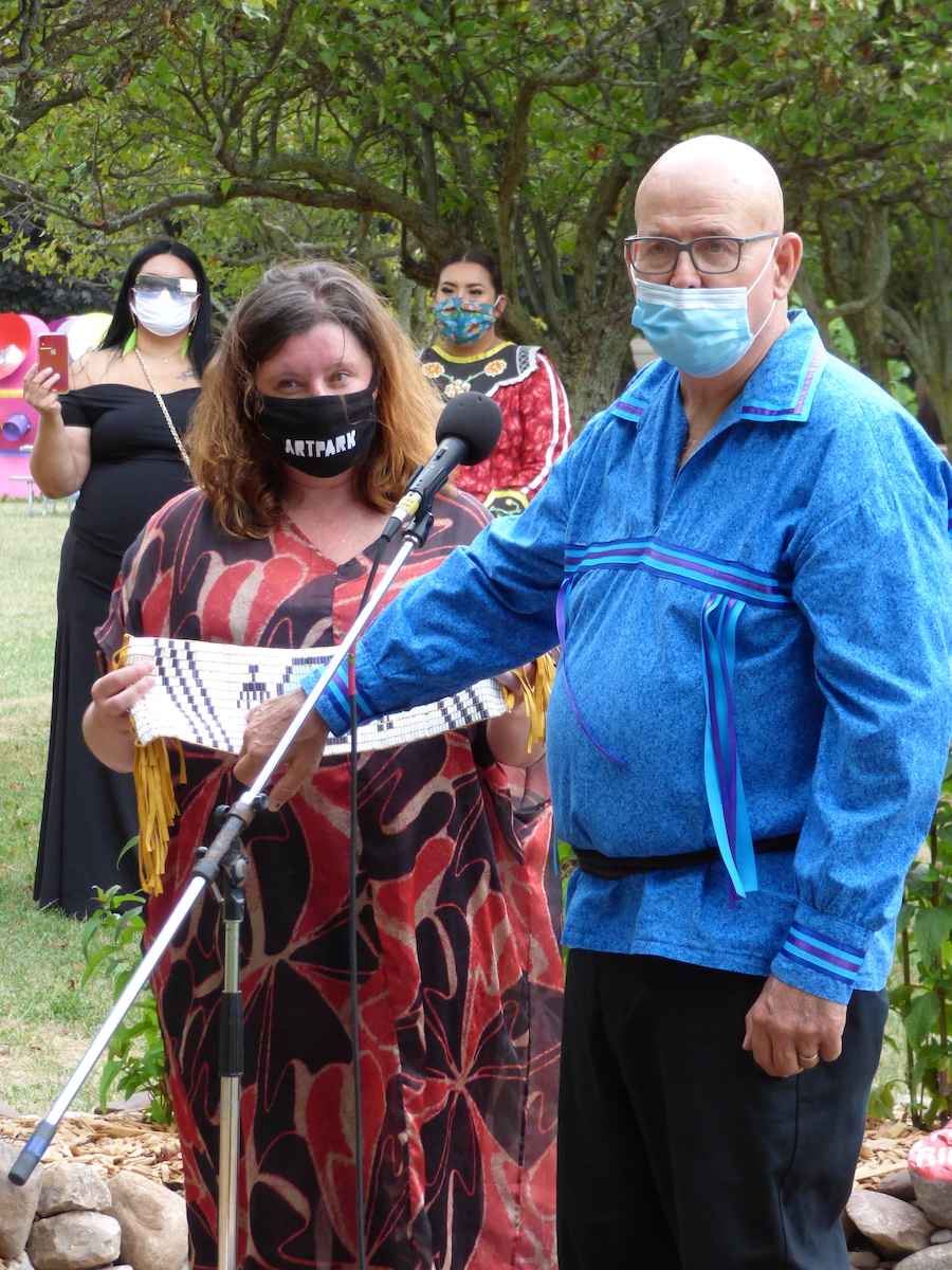 Clark said, “I'm so honored and, on behalf of Artpark board of directors, I wanted to thank this community – all of us coming together in this process. Michele-Elise Burnett has been our guide – my teacher – in understanding the presence and the culture and the lives of our neighbors – and the meaning of this land. I'm very grateful for our neighbors, our community, our brothers and sisters, from Tuscarora and Iroquois nations for sharing this land with us.”