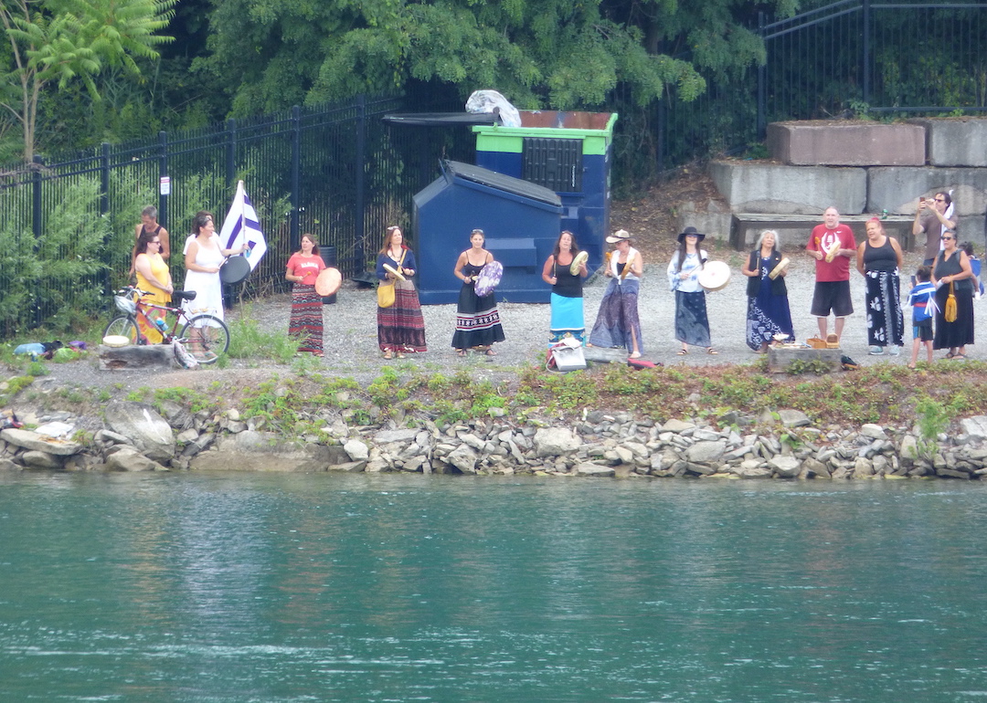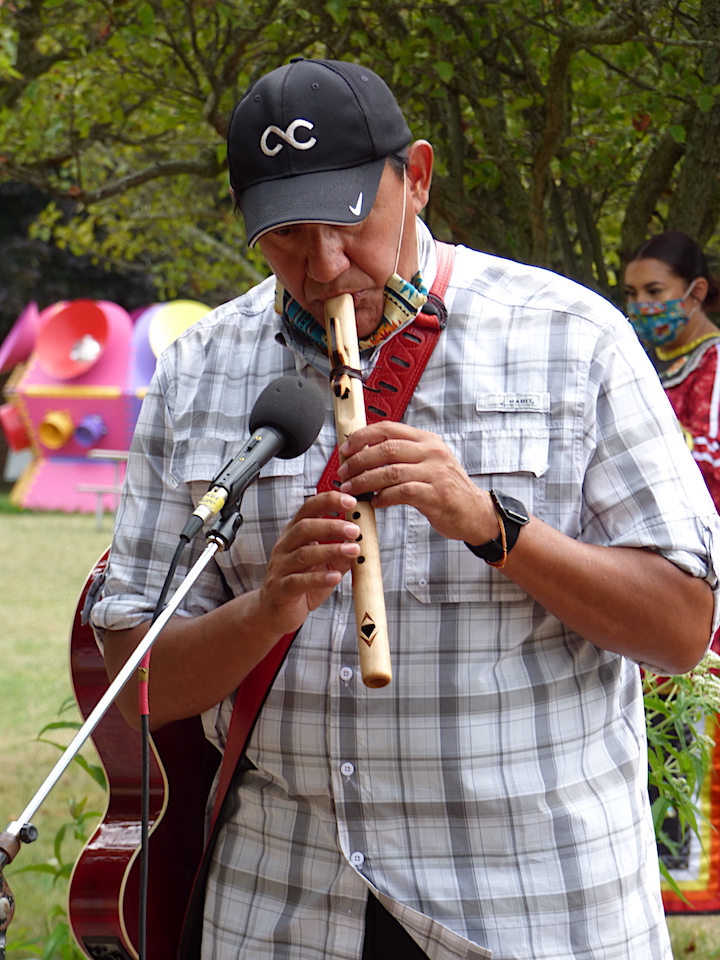 Burnett is in Canada and was unable to attend the ceremony due to border restrictions. However, she was still able to participate. From Queenston, she paired with drummers and singers for a Strong Women song to honor all women and Mother Earth. Artpark patrons watched from across the Niagara River.