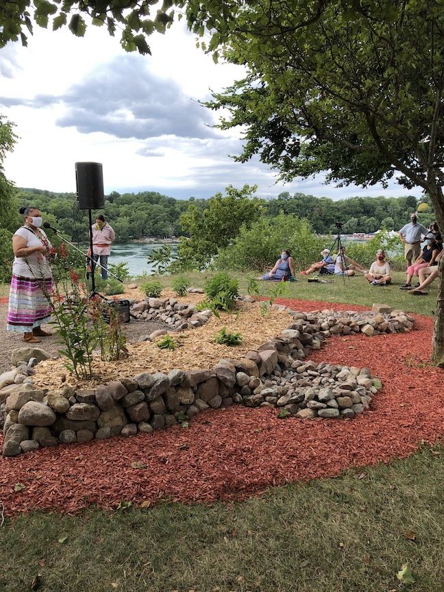She also wrote, “This garden is more than a place to reflect and take in the beautiful settling along the Niagara River. It is an outdoor classroom led by native elders, knowledge-keepers, storytellers who will share their traditions, cultural, knowledge through various workshops and teachings. It will strengthen our connections to Mother Earth through honored and traditional stories and songs all about cultivating and learning about Native American plants and their medicines. It is a place to remind us to be grateful and to honor and respect one another, and all living things.